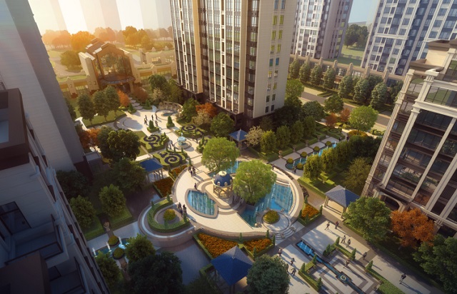 泰爾·書(shū)香頌項(xiàng)目在設(shè)計(jì)中,以中軸線呈現(xiàn)兩翼規(guī)整對(duì)仗,營(yíng)造出縱深尺度宏大的莊嚴(yán)與氣勢(shì),突出尊榮華貴的氛圍,利于減少戶(hù)型種類(lèi),減少施工難度,利于打造主次分明的景觀系統(tǒng)。
